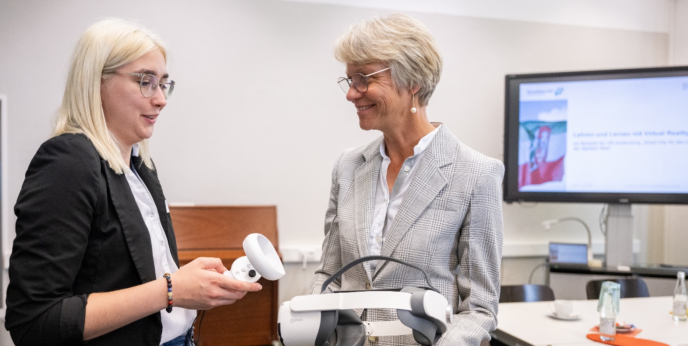 Das Schulministerium wird den Zentren für die schulpraktische Lehrerausbildung und den Schulen über die rund 50 Kommunalen Medienzentren in Nordrhein-Westfalen bis Ende 2024 mit etwa 3.000 VR-Brillen ausstatten. Auf dieser Grundlage soll in den nächsten fünf Jahren erprobt werden, welchen Beitrag die VR-Technologie für Lehren und Lernen in der digitalen Welt an Schulen leisten kann. Das Projekt richtet sich zudem auch gezielt auf die Lehrkräfteausbildung in NRW. Angehende Lehrkräfte, v.a. im Fach Geographie, sollen sich bereits während der Ausbildung bzw. des Referendariats mit neuen Technologien zur Unterstützung von Lehr- und Lernprozessen vertraut machen können und dabei die Gestaltungspotenziale eines zukunftsgerichteten Unterrichts kennenlernen.