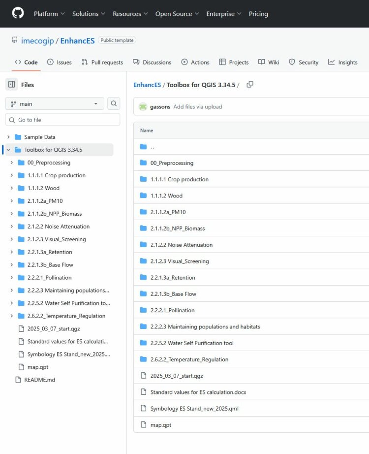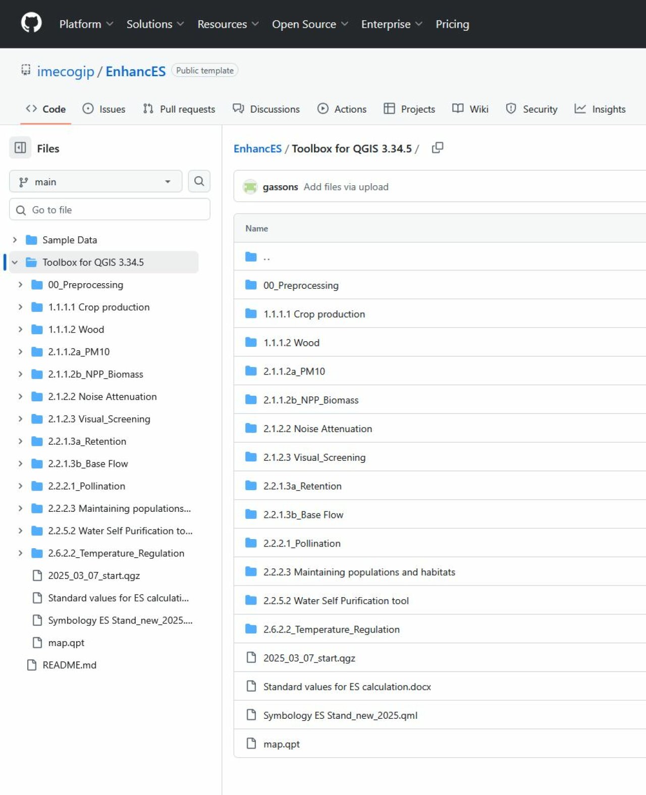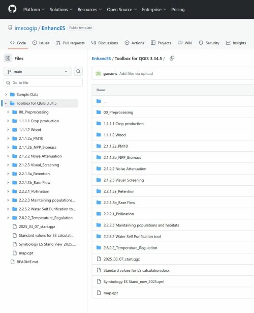 Auf unserer GitHub-Seite finden Sie die neuesten Tools und Ressourcen: https://github.com/imecogip/EnhancES/tree/main/Toolbox%20for%20QGIS%203.34.5