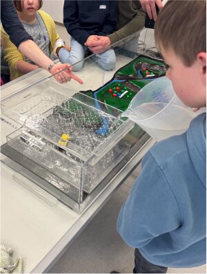 Besonders erfreulich war dabei, dass viele der Teilnehmenden deutlich jünger als die Zielgruppe des regulären Projektangebots im AKS waren, das sich in erster Linie an weiterführende Schulen richtet. Vor allem Kinder und jüngere Schülerinnen und Schüler zeigten großes Interesse daran, Hochwasserprozesse spielerisch zu erkunden.